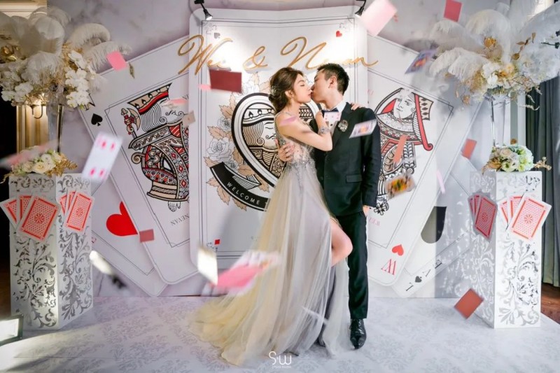 来自中国台湾的Weiwei和Nevan爱情长跑了10年步入礼堂,热爱德州扑克的两人选择以扑克为婚礼主题,并由Weiwei亲自规划。
