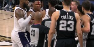 大发体育11月27日讯 今日NBA常规赛,湖人客场挑战马刺。比赛第三节,科林斯下落防守肘击威少头直接打到头破血流,威少起身直接找科林斯干架。裁判观看回放之后,科林斯二级恶意犯规被驱逐,威少吃到技术犯规!知名评论员Skip发推评价了该事件。