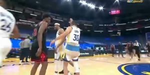 三节比赛,斯蒂芬-库里24投11中拿到32分。并且库里赛中还有多次摔到屁股,他也有些不舒服但坚持出战。