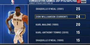 在比赛的第三节中,老鹰三分11投11中,成为NBA历史上第一支在单节比赛中能够三分11投全中的球队,此前最佳表现是骑士队在2014年11月15日对阵老鹰的第一节中三分9投9中。