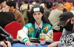 尽管如此,Xu一度顽强追赶。她先是用口袋6顶住Kawauchi的A♠10♣成功翻倍,随后又用A♣7♦再次击败同一对手的8♠6♦完成第二次翻倍。不过不久之后,她的筹码再次回落到仅剩13BBs。当行动在小盲位弃牌到她时,Xu感觉到新的机会。