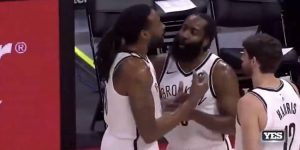比赛进行到第一节末段时,篮网叫了一次暂停。“哈登在暂停时在边线上表现得很活跃,他似乎在和小乔丹谈论他的防守问题。”美媒配文写道。