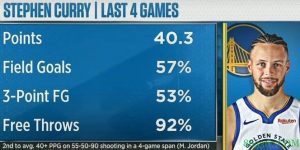 “斯蒂芬是我们篮球比赛的美妙礼物之一,”纳什说,“在准度、灵巧、得分效率、投篮距离这些方面,他是如此的独一无二。这些都是史无前例的。”
