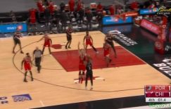 直播吧1月31日讯 NBA常规赛,开拓者在客场以123-122险胜公牛。终场前6.2秒,小加里-特伦特和拉文争球,考文顿拿到皮球交给利拉德,后者在右翼投进撤步高难度三分完成读秒绝杀。