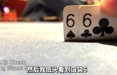 这手牌的结果真是让人大跌眼镜。枪口+1位,HJ位和小盲位都跟注,Brad Owen在大盲位过牌,然后看牌是6♠6♣。
