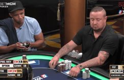这一期最活跃的玩家是Eric Persson,他的VPIP(入池率)高达52%。在节目过程中,他的盈利一度高达20万,而且很少见地,他似乎能知道盖哥的脑子里在想什么。在一手牌里,他竟然光凭一张嘴就让盖哥用A嗨跟注了一个6万刀的河牌下注,而他自己却拿着坚果顺子。
