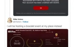 最近, WSOP.com一场$5,300金手链赛事因参赛人数不足8人取消了。这是一场门票 $5,300的线上无限注德州扑克豪客赛,是WSOP线上秋季金手链系列赛的一部分。美国当地居住在密歇根、新泽西州和内华达州的选手可以报名参赛。比赛的规定开始人数是8人,但是直到美东时间下午7点,也就是比赛开始时间,总共只有4位选手进入大厅。