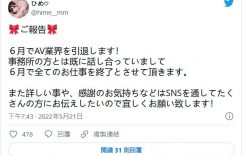 是的,AV界的引退潮还在持续〜因为这一行就是这么竞争,大家别看金字塔顶端的女优过超爽花钱如流水,其实在新鲜肉体不虞匮乏的情况下,AV界的竞争超激烈,不管你脸蛋再漂亮身材再火辣,几支作品没卖好就很难再翻身了⋯