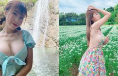 【大发扑克】花海裡驚見「巨乳洋裝妹」Vina!「白嫩側乳」露出半邊,空氣裡都是奶香!