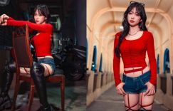 半夜睡不著覺要幹嘛,那就出來抓紅衣小女孩!尤其這位正點又性感的,夜裡穿梭在大街小巷,顯眼的紅色上衣讓人不注意都很難,貼近一看果然是個五官精美的正妹,牛仔短褲下還有超火辣的紅色吊帶襪,搭著黑色長靴格外誘惑,月光下就屬她最讓人傾心! (