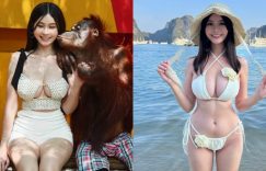 去泰國曼谷旅遊的人應該都知道該地動物園裡有一隻超吸睛寫經常被人說「很色」的紅毛猩猩,去玩耍的遊客都爭先排隊和紅毛猩猩合照!最近台灣網紅正妹護理師「Judy」就去體驗跟紅毛猩猩合照打卡的滋味,外型美豔穿著火辣的她,胸前傲人巨乳一點都不客氣露出,中路開開的小可愛完全擋不住豪乳深溝,「人字形」的美乳形狀也呼之欲出啦。 (