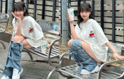 走在台北某條人行道上,馬上被這超犯規的畫面所吸引,穿著寬鬆白T-Shirt的長髮妹子「苡昕」,看似休閒愜意,下面的牛仔褲卻極度邪惡,特殊剪裁幾乎直落在小腿肚下而已,白皙又稚嫩的密大腿一覽無疑,搭上常版上衣的緣故,若隱若現的臀部真令人想靠近看個究竟! (