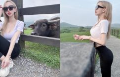 最近天氣晴朗陽光正好,去擎天岡踏青順便看牛牛也很不錯!不少情侶家人也都會去擎天岡呼吸新鮮空氣呢~就有一位「金髮巨乳」的正妹穿著貼身短袖上衣和緊身運動褲,戴著墨鏡出現在擎天岡大草原! (