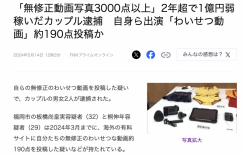 又有人拍无码被抓了!住在福冈的一对情侣自己担任男女主角,从2021年开始陆续上传了接近200部无码影片,2年多的时间赚了9500万円(人民币440万元),不久前被抓了: