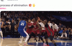 直播吧5月14日讯 昨日东部半决赛G6,热火击败76人,总比分4比2将对手淘汰出局。热火官方今日晒出恩比德昨日被三人包夹并遭阿德巴约封盖的动图,回顾了昨日的胜利。
