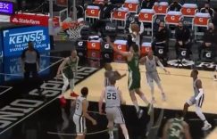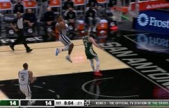 直播吧5月11日讯 雄鹿今日在客场挑战马刺。比赛第一节,字母哥吸引双人包夹!分球顺下的大洛,后者迎着德罗赞就是一记慢吞吞但又无法阻挡的隔人暴扣!