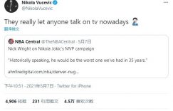 【大发扑克】名嘴称约基奇将是近35年最菜MVP 武切维奇:谁都能上电视瞎说呗