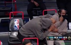 【大发扑克】你俩干啥呢!篮网大比分领先 杜兰特哈登在板凳席上嬉戏