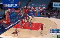 直播吧3月28日讯 NBA常规赛,奇才主场迎战活塞。首节比赛还剩下1分多钟时,奇才的进攻回合,威少在左路送出击地球,八村塁接球顺下来到禁区,面对活塞新秀斯图尔特迎面上演隔扣,相当炸裂!