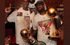 【大发扑克】忆往昔!詹姆斯转发波什晒出的热火三巨头夺冠捧杯照片