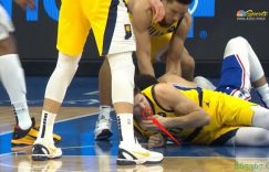 直播吧3月2日讯 步行者VS76人的比赛正在进行中。比赛进行到第三节中段,76人进攻,西蒙斯倒地救球。步行者球员麦克德莫特也倒地奋力拼抢。西蒙斯的手肘不慎打掉了麦克德莫特的牙齿。