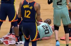 直播吧2月21日讯 刚刚结束的一场NBA常规赛,黄蜂102-100险胜勇士。第四节最后时刻,勇士以100-98领先,沃纳梅克和拉梅洛-鲍尔跳球,海沃德拿到皮球,但追梦格林随即与其倒地争抢,不过裁判称黄蜂请求了暂停,格林不满判罚连续吃到两T被驱逐出场。