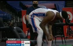 直播吧2月18日讯 NBA常规赛,火箭在客场输给76人,遭遇七连败。在第三节还剩3分多钟时,沃尔突破上篮打进后喊了个“and one”,随后被裁判吹罚技术犯规。