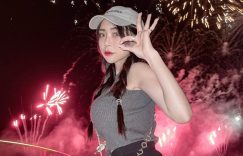 但今天介绍这位妹子,本身就超级吸睛啦!置身在华丽的花火中也完全没被掩去风采,尤其是她肌肤白皙、身形窈窕,穿着紧身小背心和窄裙,秀出S曲线的好身材!